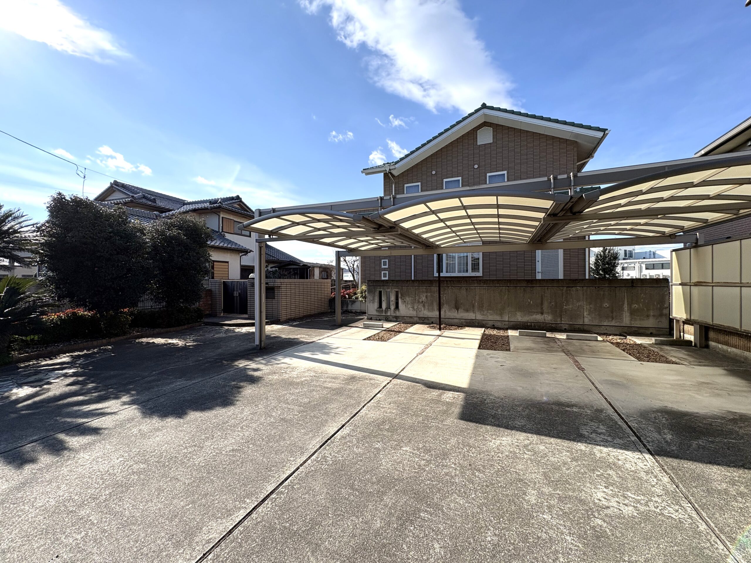 カーポート並列3台可能の広々駐車場付き